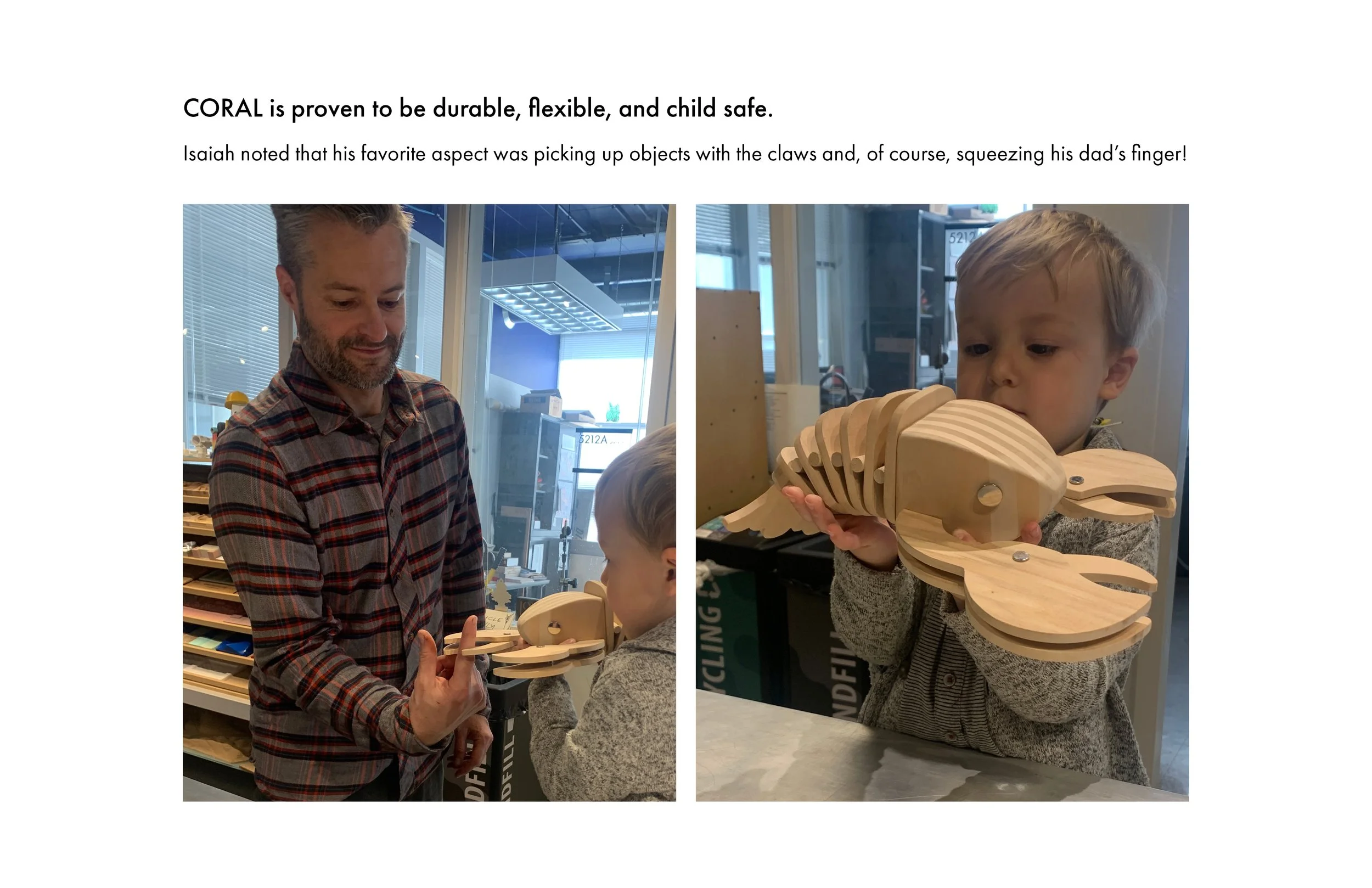 Please note that CORAL’s claws are pinch proof and only feels like a slight squeeze!